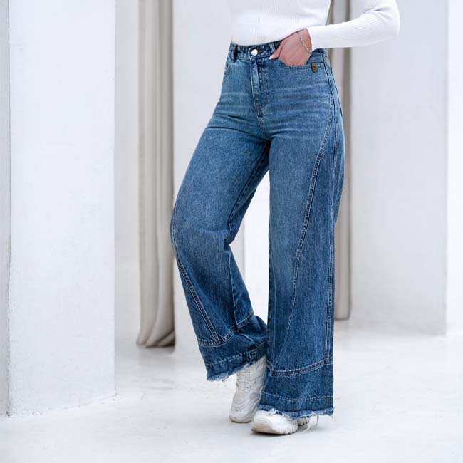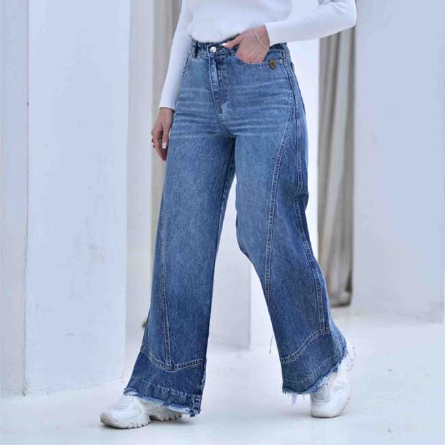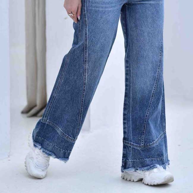 شلوار بگ جین برشدار زنانه و دخترانه آبی